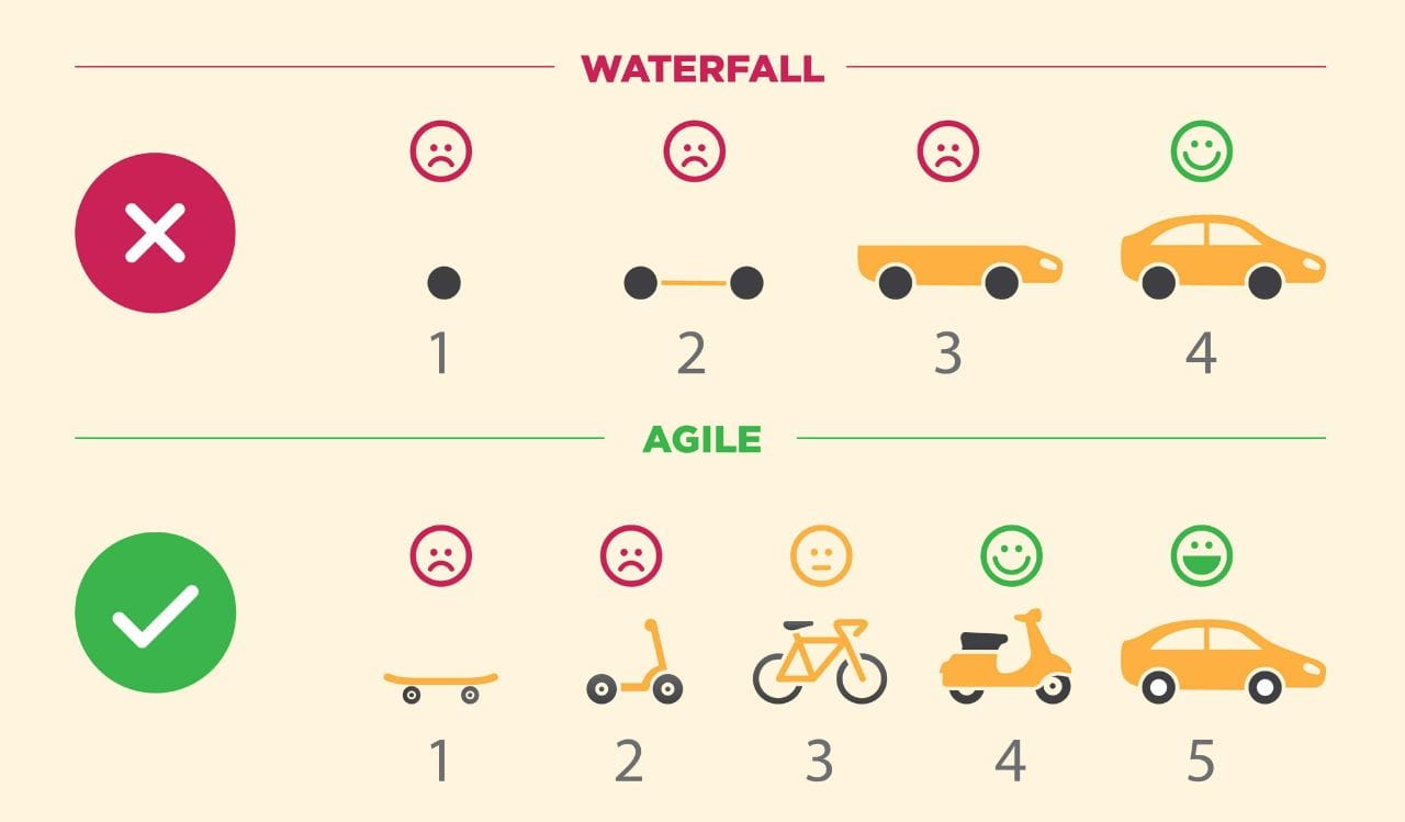- كيف يعمل؟ بدلاً من محاولة إتمام المشروع دفعة واحدة، يتم تقسيمه إلى أجزاء صغيرة يمكن تنفيذها وتسليمها بشكل تدريجي.