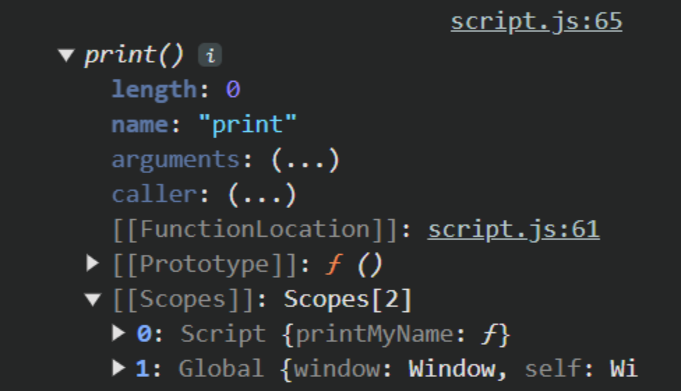 console.dir(print); // [[scopes]] -> not found closures