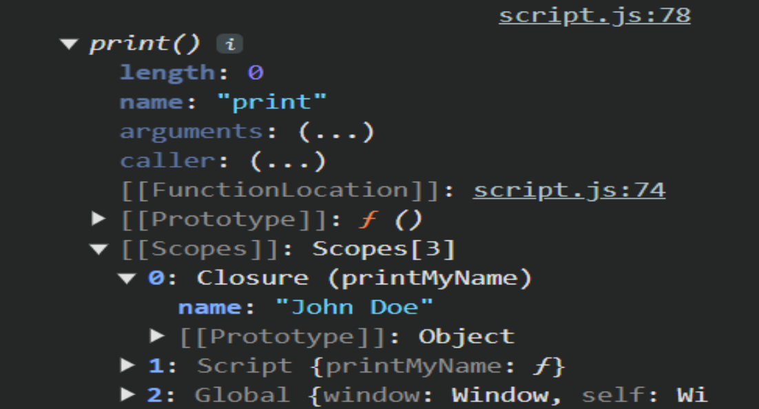console.dir(print); // [[scopes]] -> closure -> {name: "John Doe"}