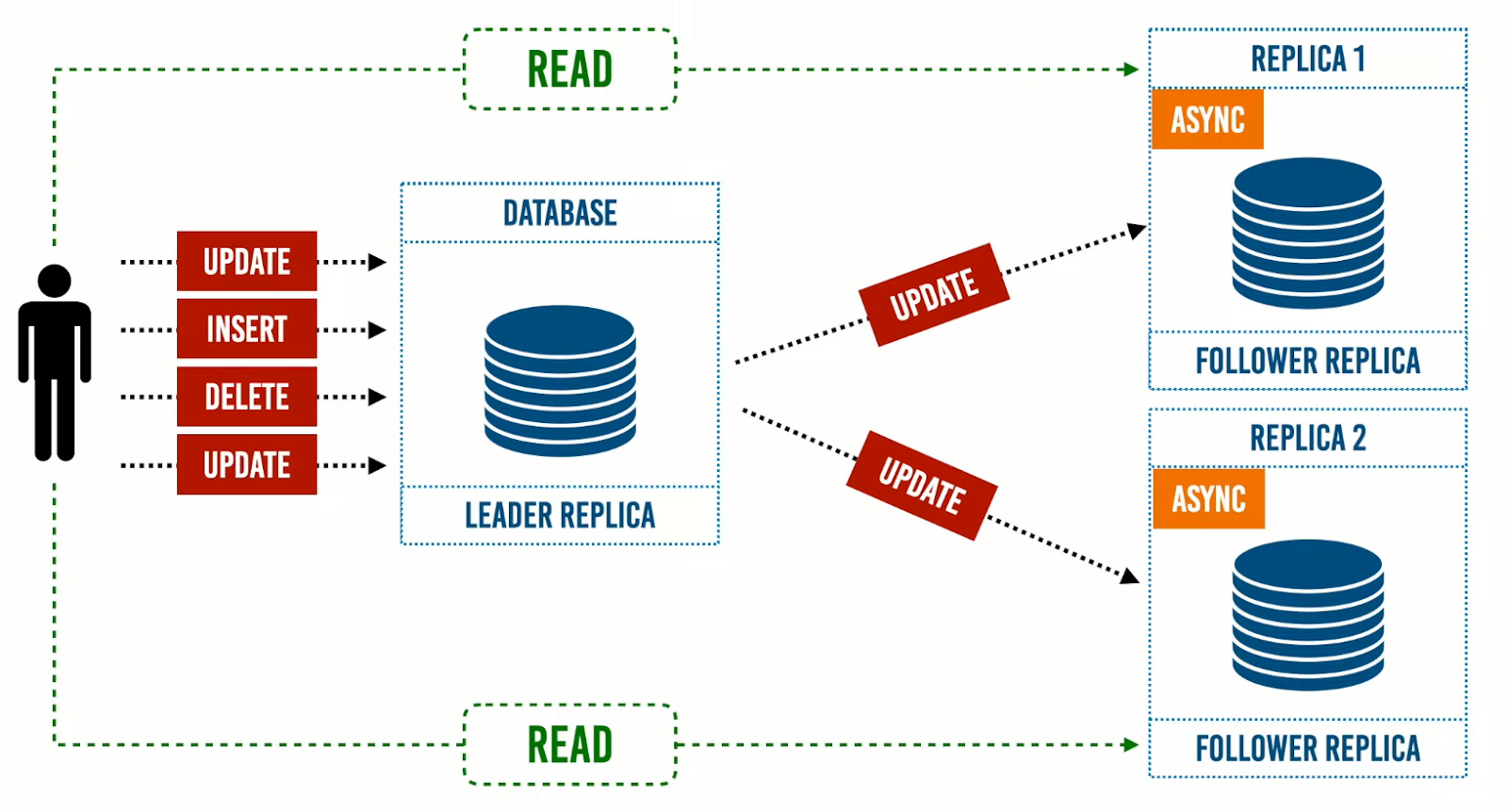 من ذلك استنتجنا أن طريقة الـAsync هي الطريقة الاكثر فاعلية والاكثر عملية: حيث تساعدنا على جعل الـLeader Replica تستقبل الـwrites فقط، وتوزع الأحمال الخاصة بالـreads علي الـFollower Replicas.