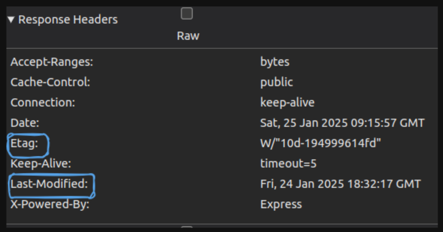 اولاً: الـ عن طريق الـ Request headers ودا في أغلب الأحيان بيتم التحكم فيه من خلالـ الـ browser عن طريق انه بيرسل الـ الـ E-Tag في الـ header الي اسمه If-None-Match (علشان الـ server بعد كده يقارنه بالـ E-Tag الموجود عنده) وبيرسل كمان تاريخ آخر تعديل تم على الـ resource في الـ header الي اسمه If-Modified-Since وممكن نتحكم اكتر من خلالـ استخدام الـ fetch api مع اضافة الـ cache options .