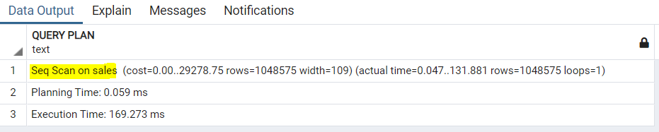 فإذن بدون Index الـ Query ردت بالـ Response في 500ms كاسوأ احتمال ولو أردنا فهم ما الذي تم سنقوم بفعل ما سبق وسنجد انه بالفعل حصل Seq Scan ..