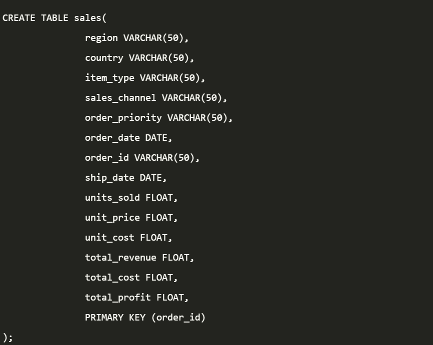 قمت بانشاء Table في الـ Database وسميته Sales وعمل Import للـ CSV File اللي فيه الـ Datasets .. فما الذي حدث ؟