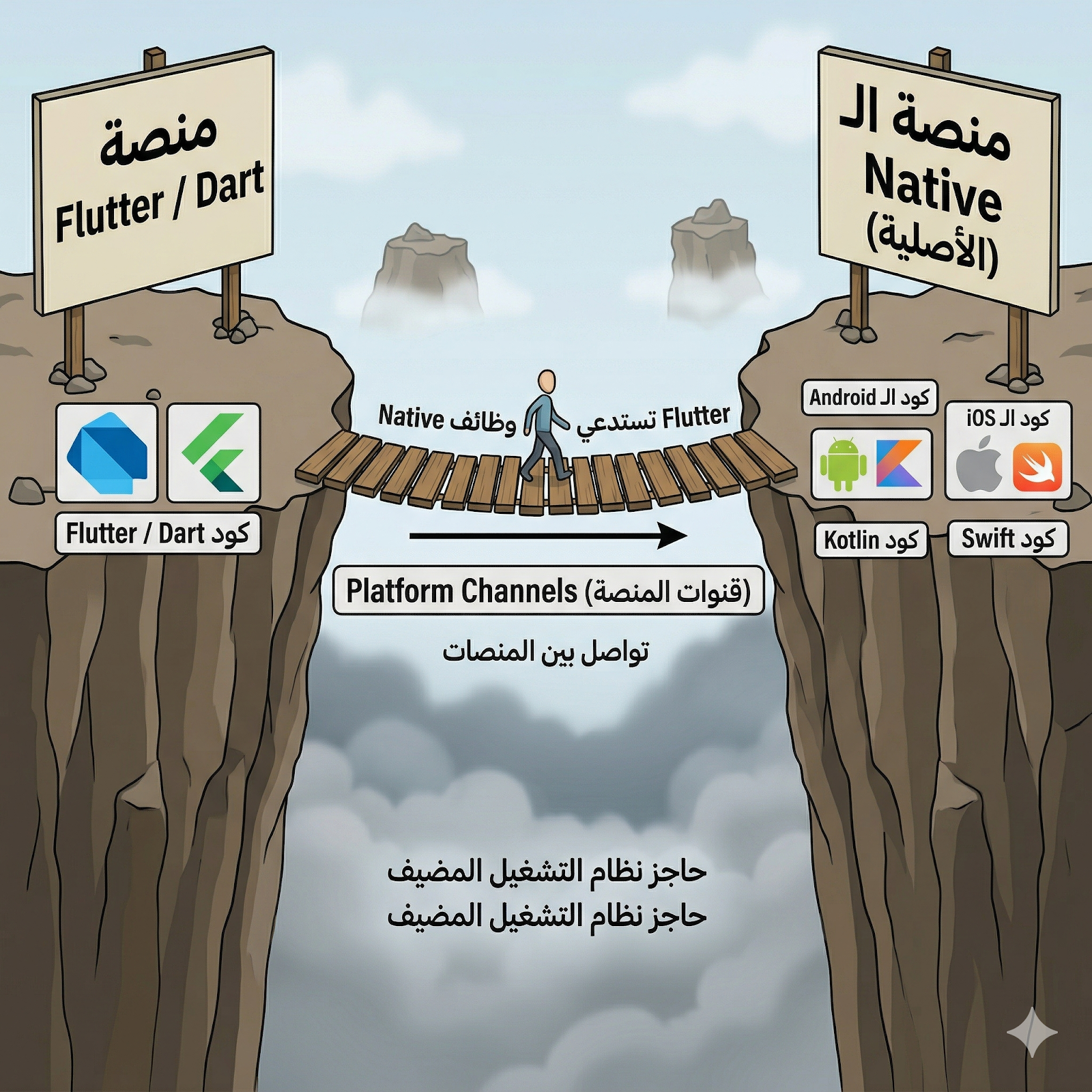 هي ببساطة الجسر اللي بيربط بين عالم Flutter وعالم الـ Native ، Android & iOS وبيسمح إنهم يتواصلوا مع بعض بسلاسة.