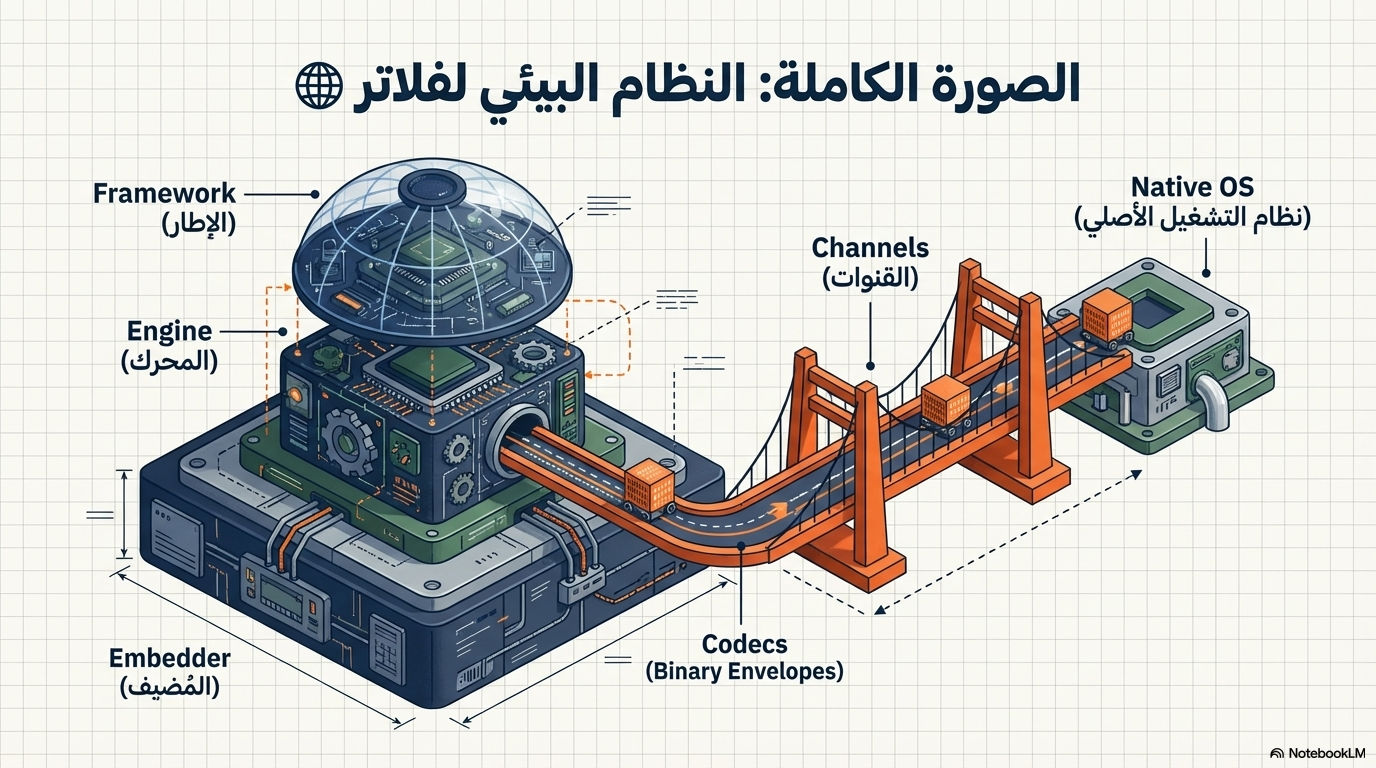 💡 من غير الجسم… المخ مش هيقدر يتفاعل مع العالم ومن غير Embedder… Flutter مش هيقدر يشتغل أصلاً