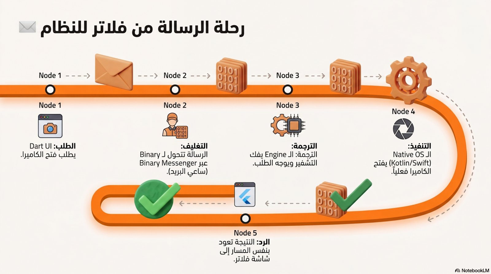 💡 زي ما الأعصاب بتنقل الإشارات بسرعة وكفاءة، Binary Messenger بينقل البيانات بين Flutter وNative بأسرع شكل ممكن.