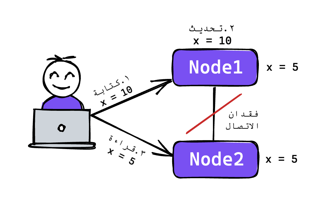 عرفنا سابقًا أن الـ Consistency تعني اتساق البيانات بينها وبين بعض، ولكن يُقصد بالـ Consistency هنا نجاح عملية القراة أو الـ Read Operation في قراءتها لآخر وأحدث التغييرات أي Write Operation وعدم قراءتها لـ Stale Data كما ذكرنا سابقًا.