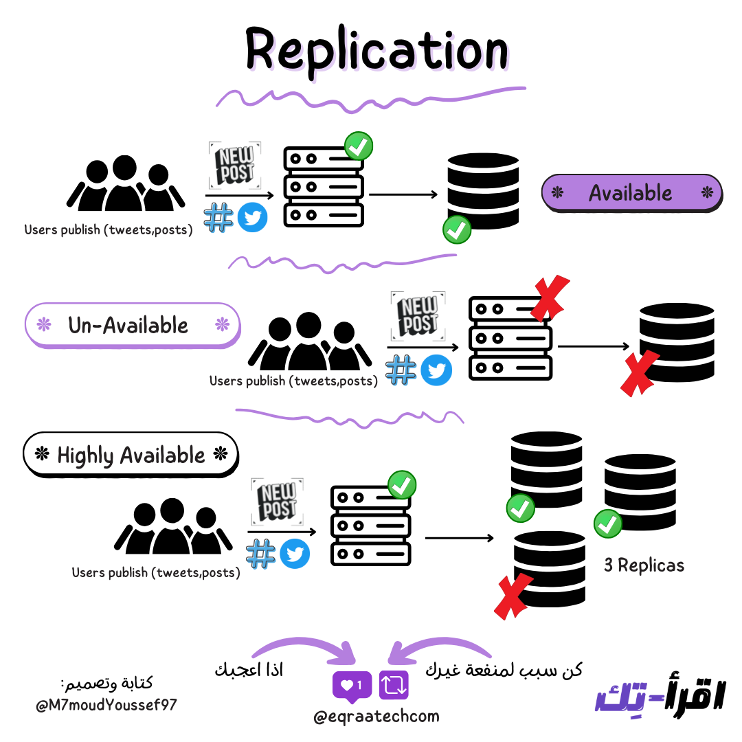 الـ Replication هو إننا نعمل نسخ من الـ Database على أكتر من Server.