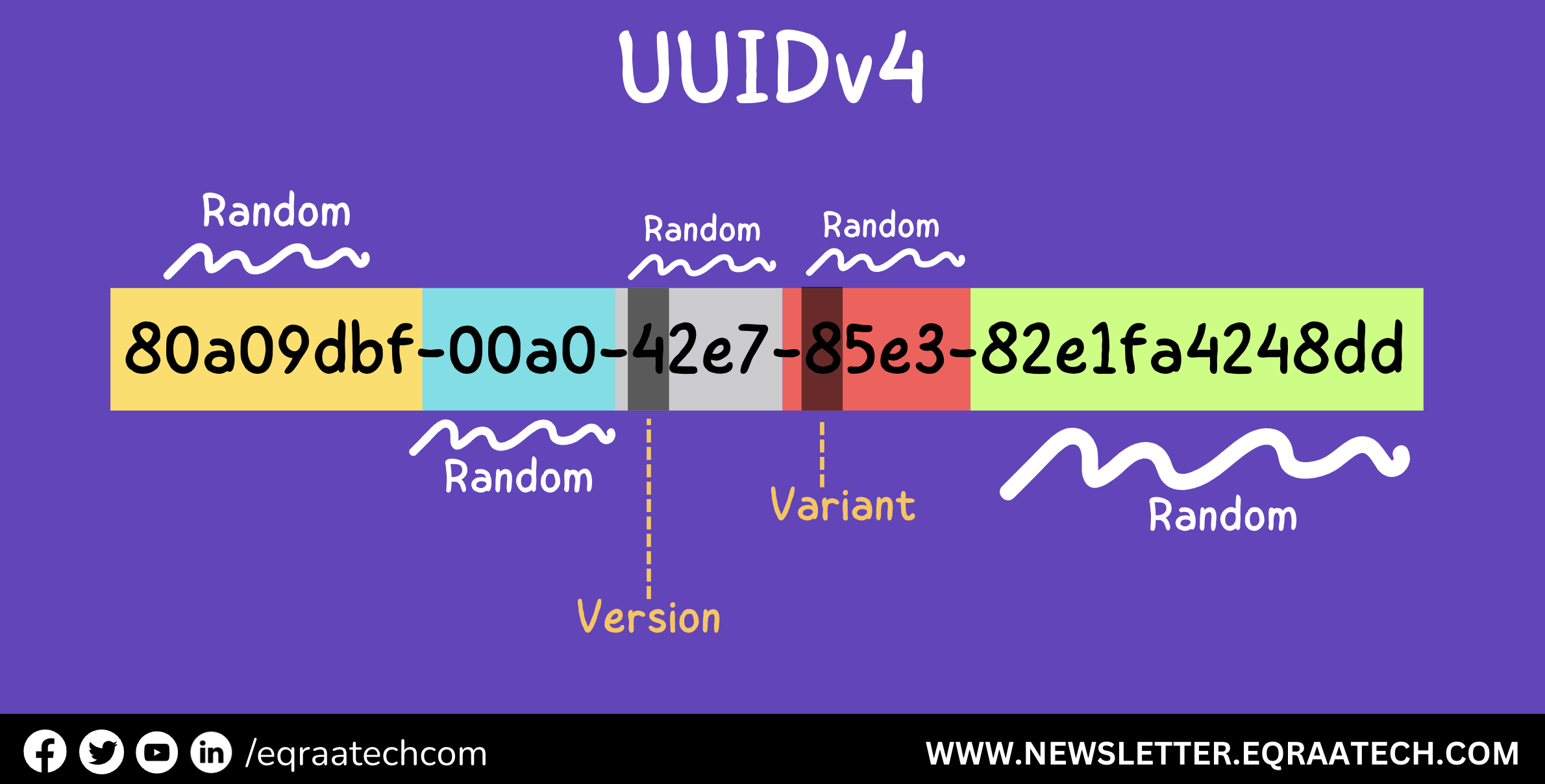 بيعتمد على العشوائية التامة على عكس بعض الـ Versions التانية اللي بتعتمد على الـ Timestamp بالاضافة للـ MAC Address على سبيل المثال.